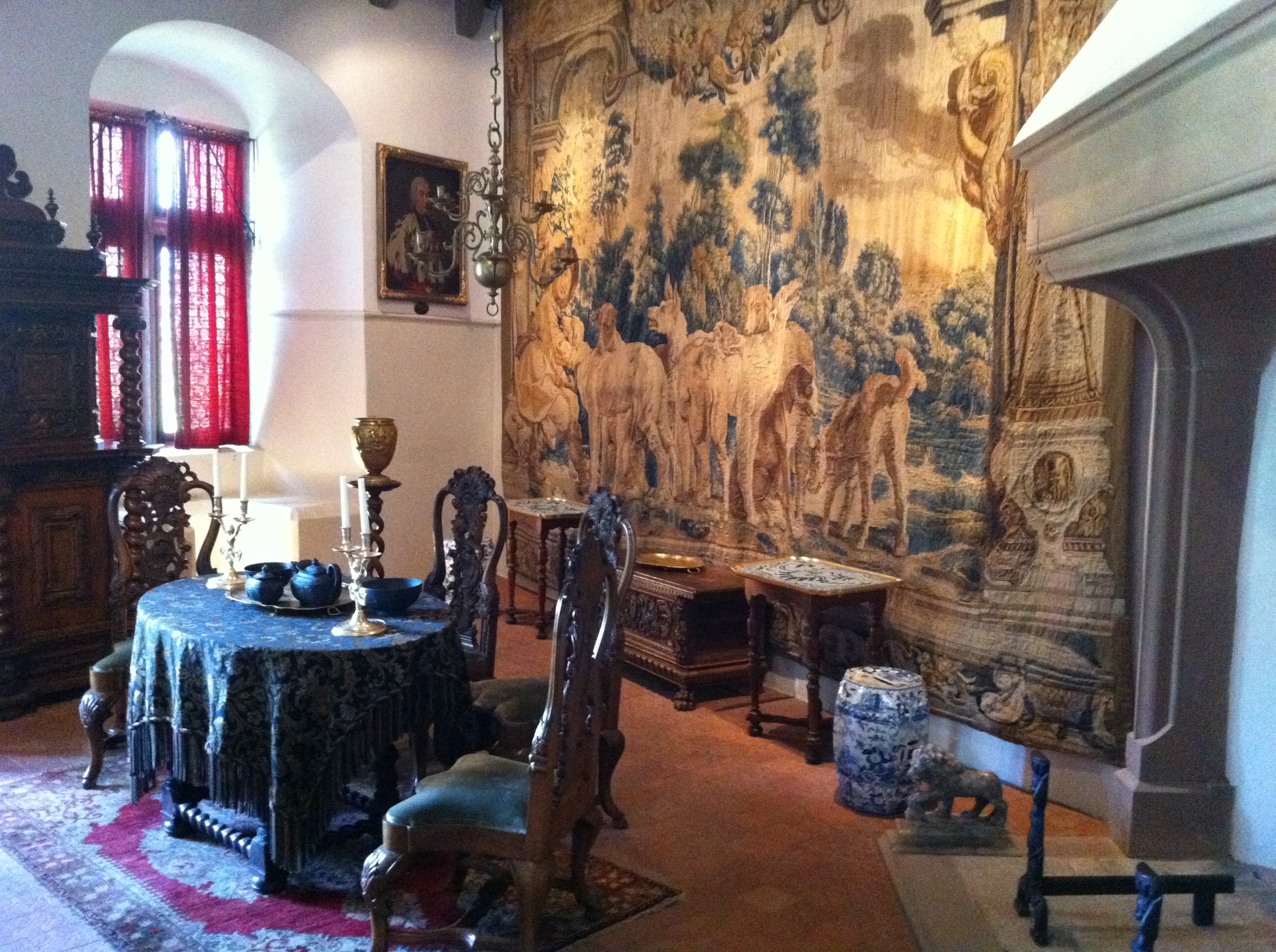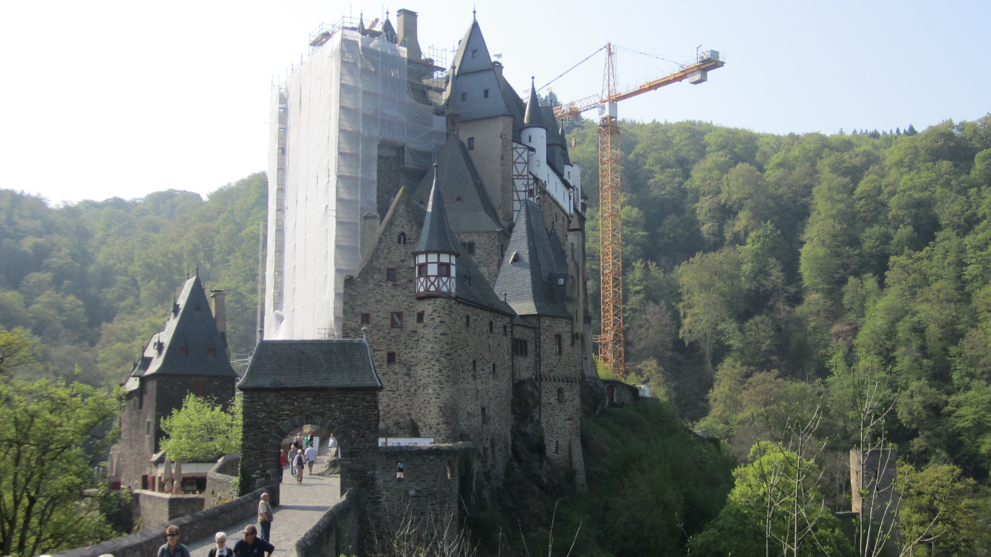 We made a quick decision to take a detour on the way to Bacharach. Burg Eltz is one if the best castles to tour in Europe. It has been in the same family since the 1200’s. The castle has had many additions since that time but most if the furnishings and decor are from the 1500’s. And for that reason it is special. Fortunately for the owners, they have made enough money with entry tickets to do some much needed exterior structural work. As it turns out, structural engineers have learned a few things since the 1200’s and they needed to apply this knowledge to keep the castle standing for future generations. So the exterior roof and walls had scaffolding all around them. The exterior was disappointing but the interior made it worth the visit.