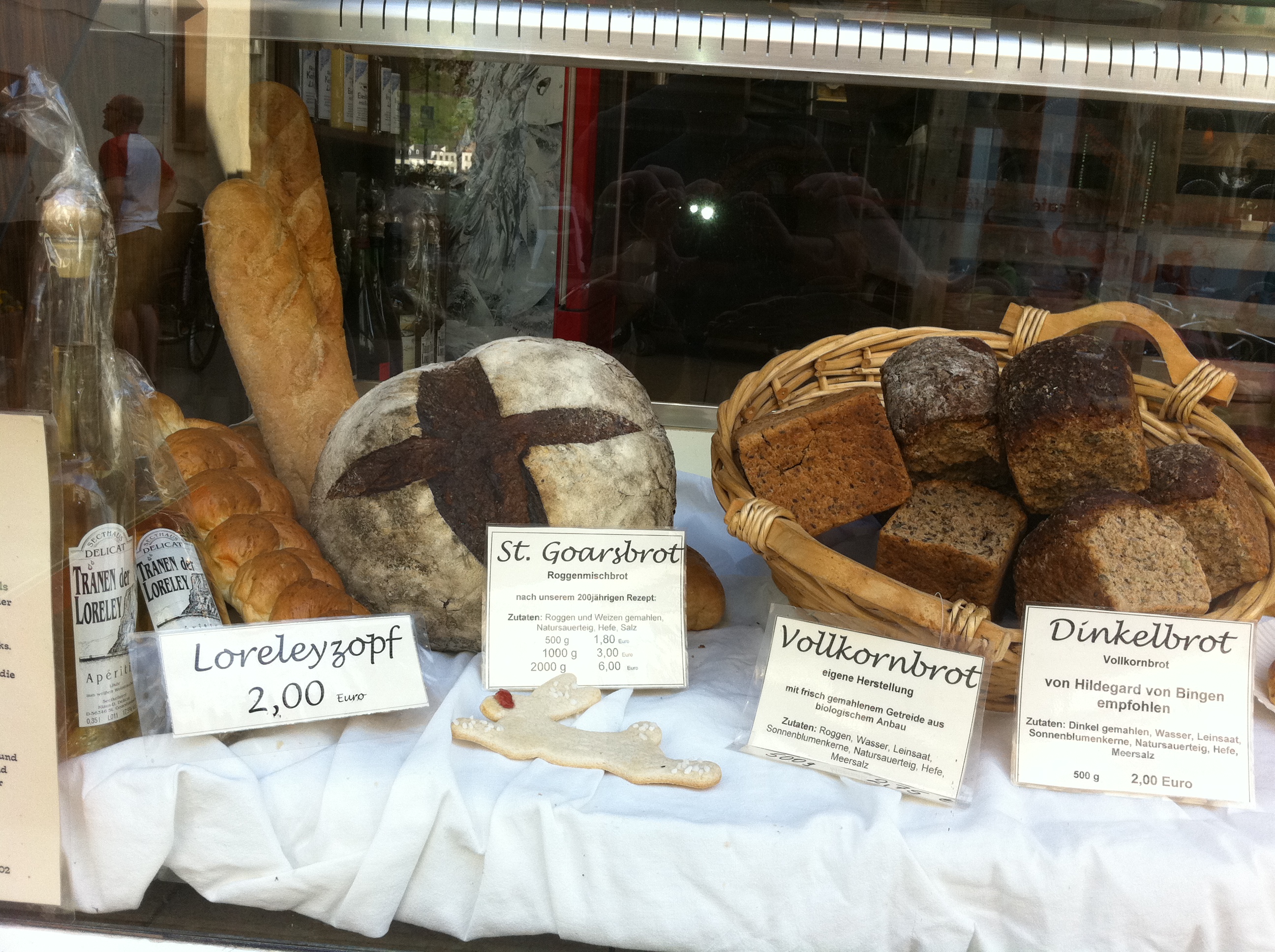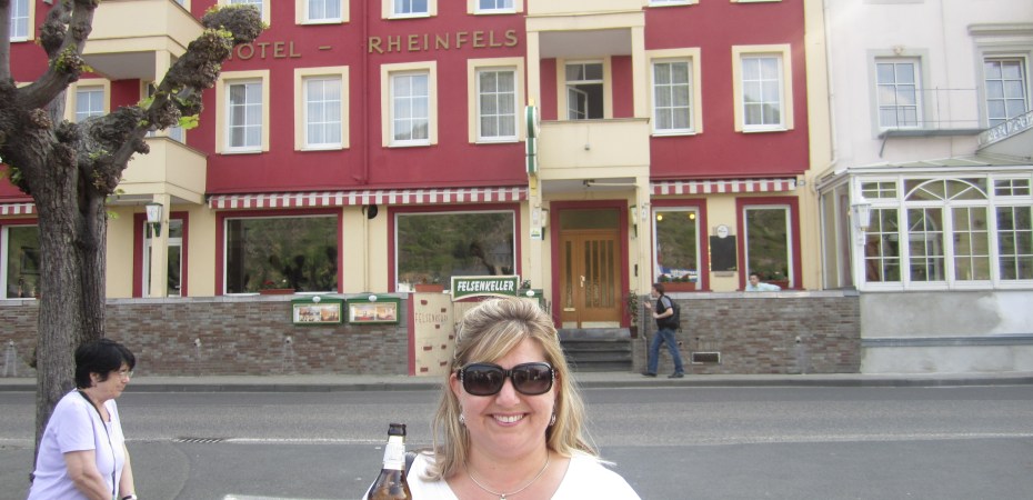Dinner was nice on the track-sided terrace of our hotel restaurant as we looked over the Rhine river. It also sat 10 feet from the train tracks there were a number if trains the seemed to pass through the restaurant at 60 mph during our dinner. Russell ordered the recommended dish, sauerbraten, marinated beef with potato dumplings and red cabbage. Melissa was more conservative and ordered pork loin covered in a mushroom sauce. Our waitress did not speak a lot of English, and the speed of her service would make her a perfect fit for a restaurant in Paris! (slow) The only thing that happen fast during dinner was the passing of trains. We intended to charge our dinner to the room, but our waitress didn’t understand us and we found out in the morning from the owner that she thought we walked her table. We obviously didn’t walk, I cant run that fast anymore. The bill was paid promptly in the morning with more than enough tip to make her feel good. Another payment of the stupid tax….