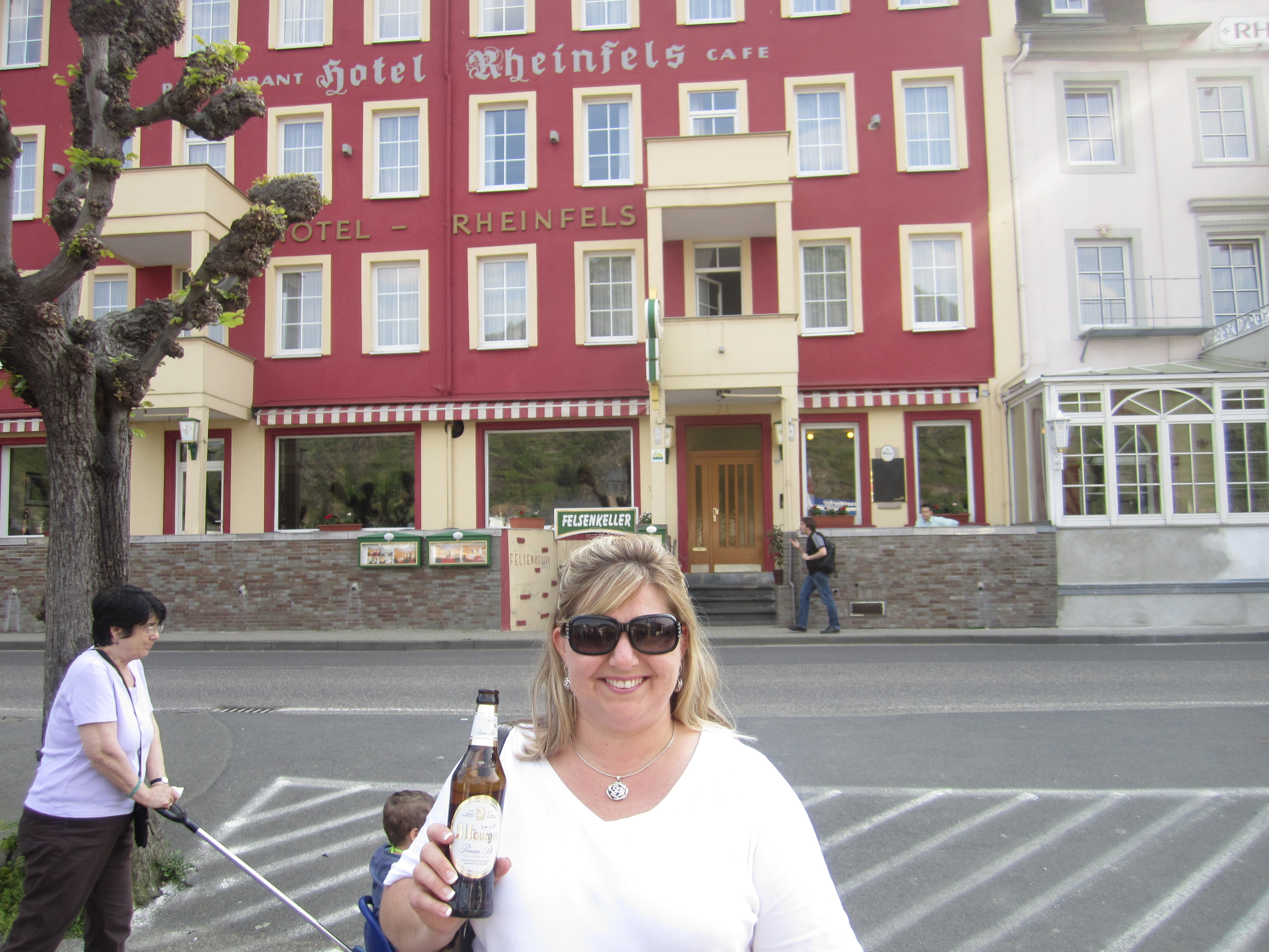 We have checked into the hotel and are enjoying a cold drink in the park sitting in the shade looking at the Rhine . Next on the agenda is the river cruise to check out the robber Barron castles and the historic Rhine river. We may run up to the Reinsfeld castle https://goo.gl/maps/ctoo5FxFhEz to tour the ruins or I may break out the telephoto lens and shoot pictures while drinking beer on the boat. Only time will tell.