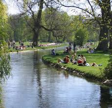 I had heard the best way to see the English Garden (the largest city park in the world) was on a bike. They say over 100,000 people show up on a warm sunny day. So we found a rental shop and got a couple of bikes and made it 100,002. The park is beautiful and has two large beer gardens right in the middle, perfect places for a pit stop on the route. It was a beautiful sunny day and the whole city seemed to be out enjoying the unseasonably warm weather. The river runs right through the park and forms a small lake where you can rent paddle boats. Right next to it is the beer garden where you can drink beer under the chestnut trees or out in the sun next to the lake. We did it both ways.