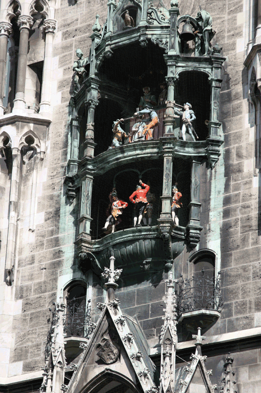 The new town hall has a glockenspiel show for all the tourists to gawk at. Think of a giant cuckoo clock that has jousters that pop out and move around instead of a little bird. The town hall also has an elevator to the top for a great view of the city. We gladly paid the 2.50 Euros to get to the top and enjoyed the scenic views of the city. Being a holiday, there were tons of tourists and activities going on…. Live classical bands, street performers, etc. We checked it out and enjoyed the festive atmosphere.