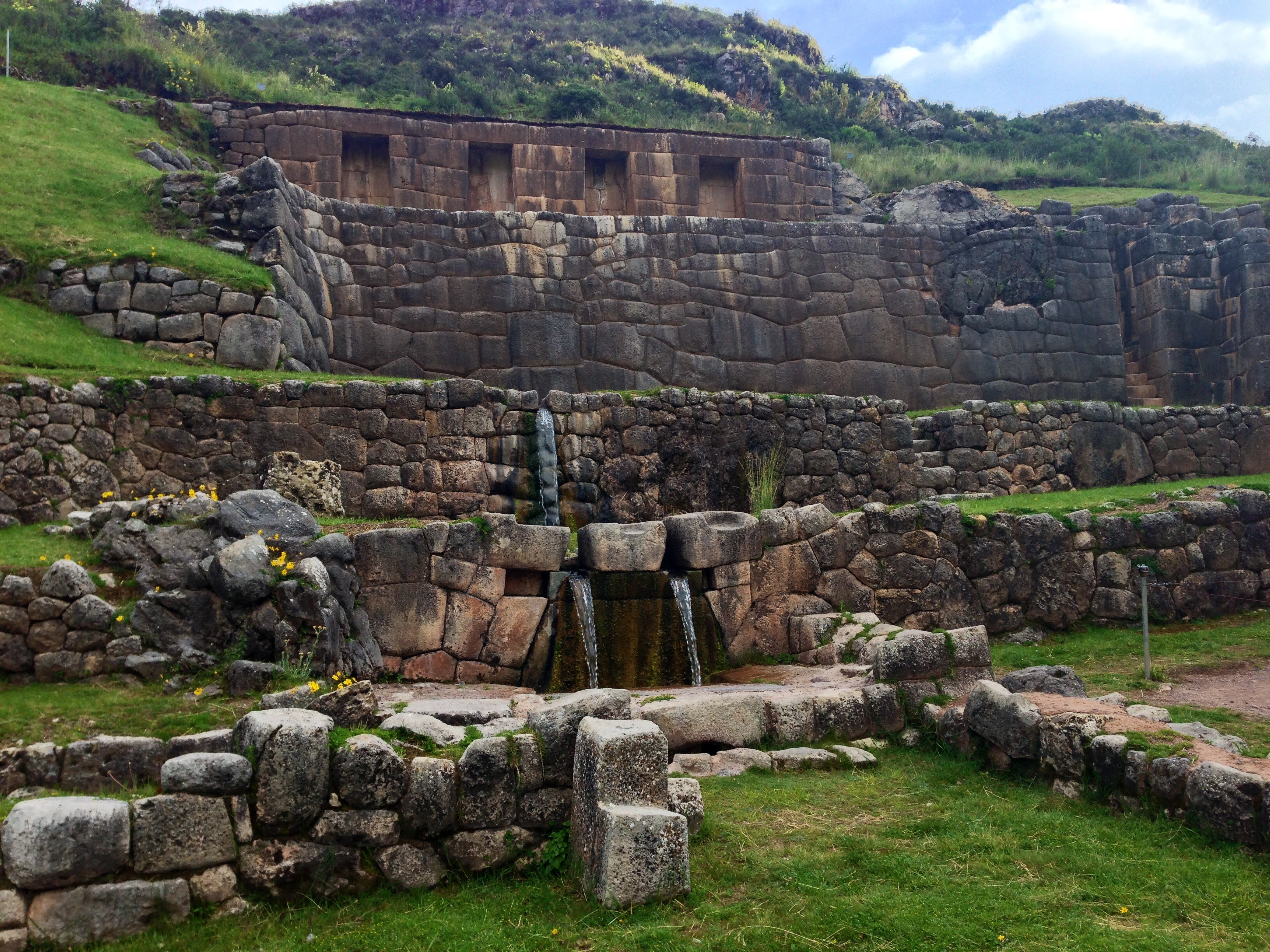 Site is supposed to be dedicated to the cult of water. They say water has never stopped flowing since it was built by the inca. The water flows into a system that provides water for crops and people of the city.